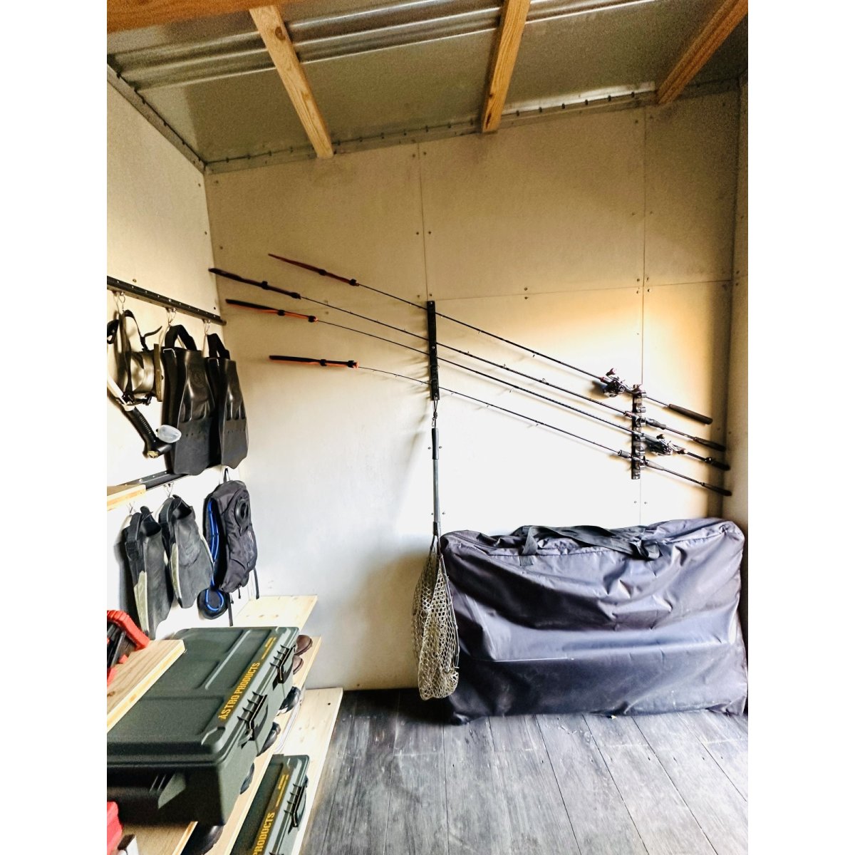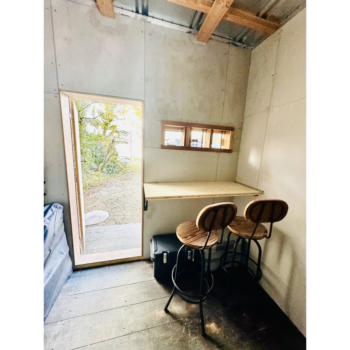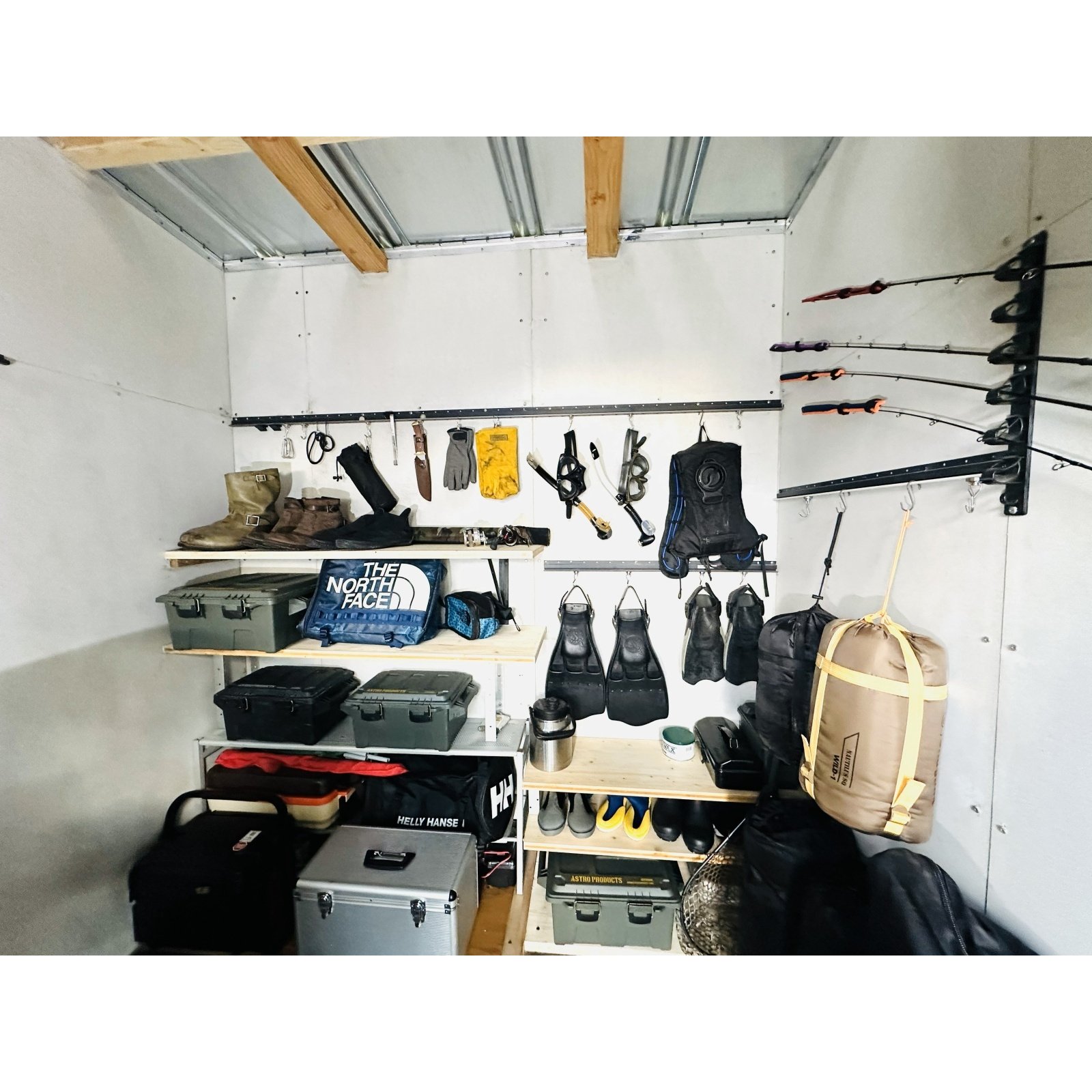 趣味の倉庫 趣味の部屋趣味を優先しすぎると、生活スペ-スまで占領してしまいそうなので、この度、小規模 1.5坪(3畳間)の倉庫をデッキの上に組んでみました。釣り・ダイビング・アウトドアなど多趣味なので、一人で鑑賞できるスペ-スとして!(^^)!入り口の横に小窓とカウンタ-を付けることで景色(海)を観ながらコーヒ-タイムです。 小規模倉庫なら3坪(9.9㎡)までの施工です。趣味の部屋・ギャラリ-・週末ハウスとしていかがかと。